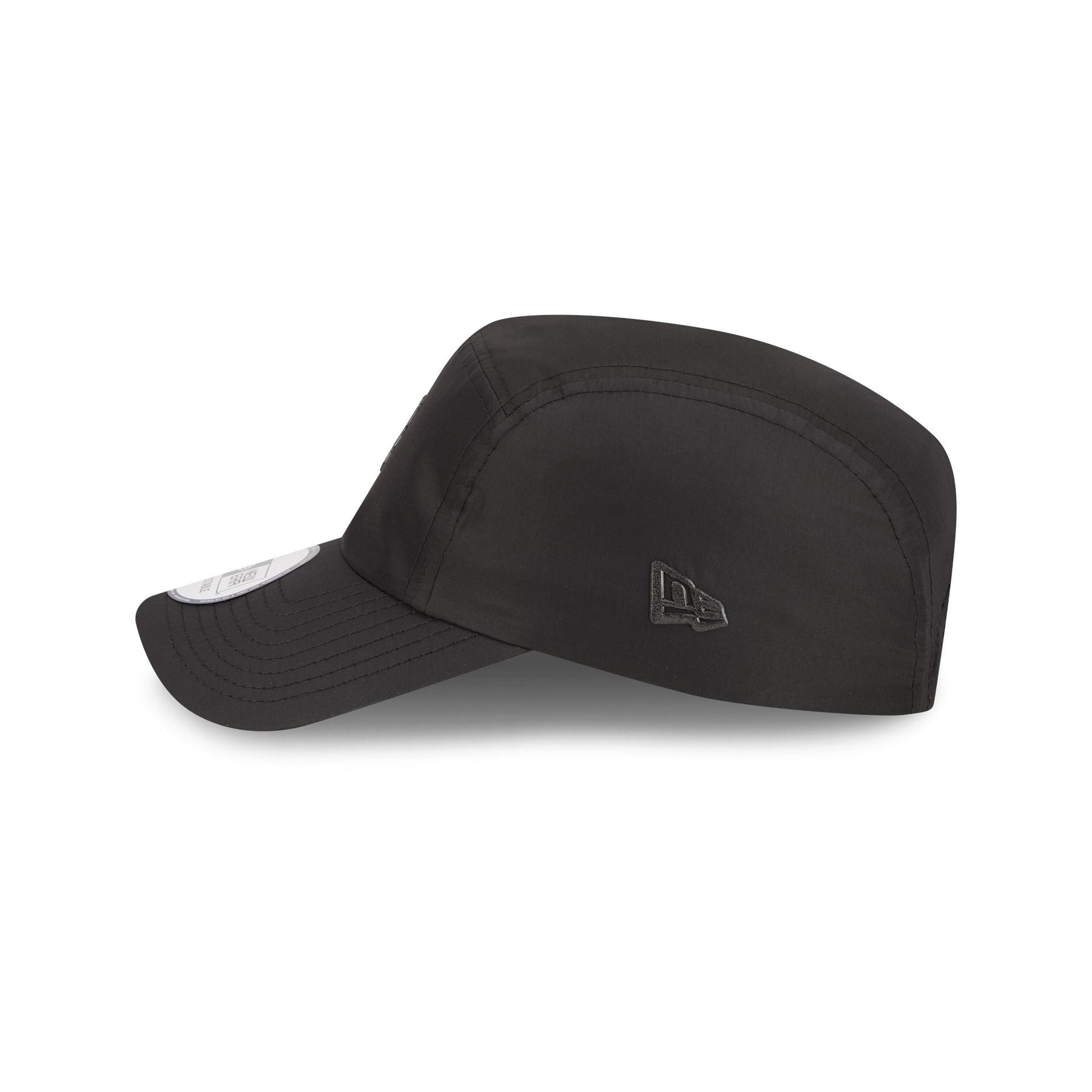 The Alpha Industries x New York Mets Black Runner Adjustable Cap features a silicone Mets logo at the front with a woven New Era Cap x Alpha Industries tag above an adjustable Alpha Industries red ribbon strapback closure at the rear.