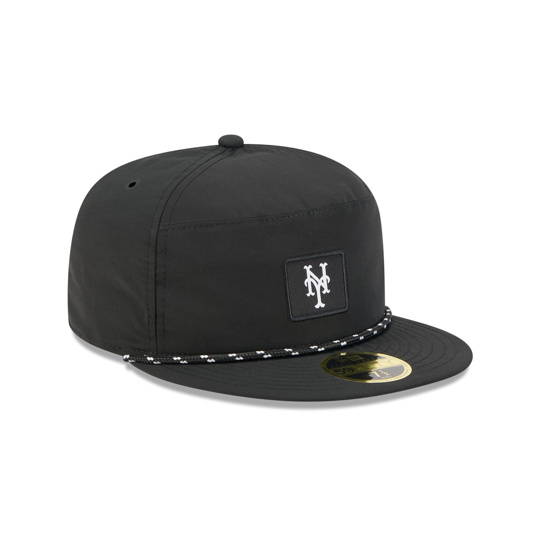 New York Mets Black Poly Rope Split Panel 59FIFTY Fitted Hat