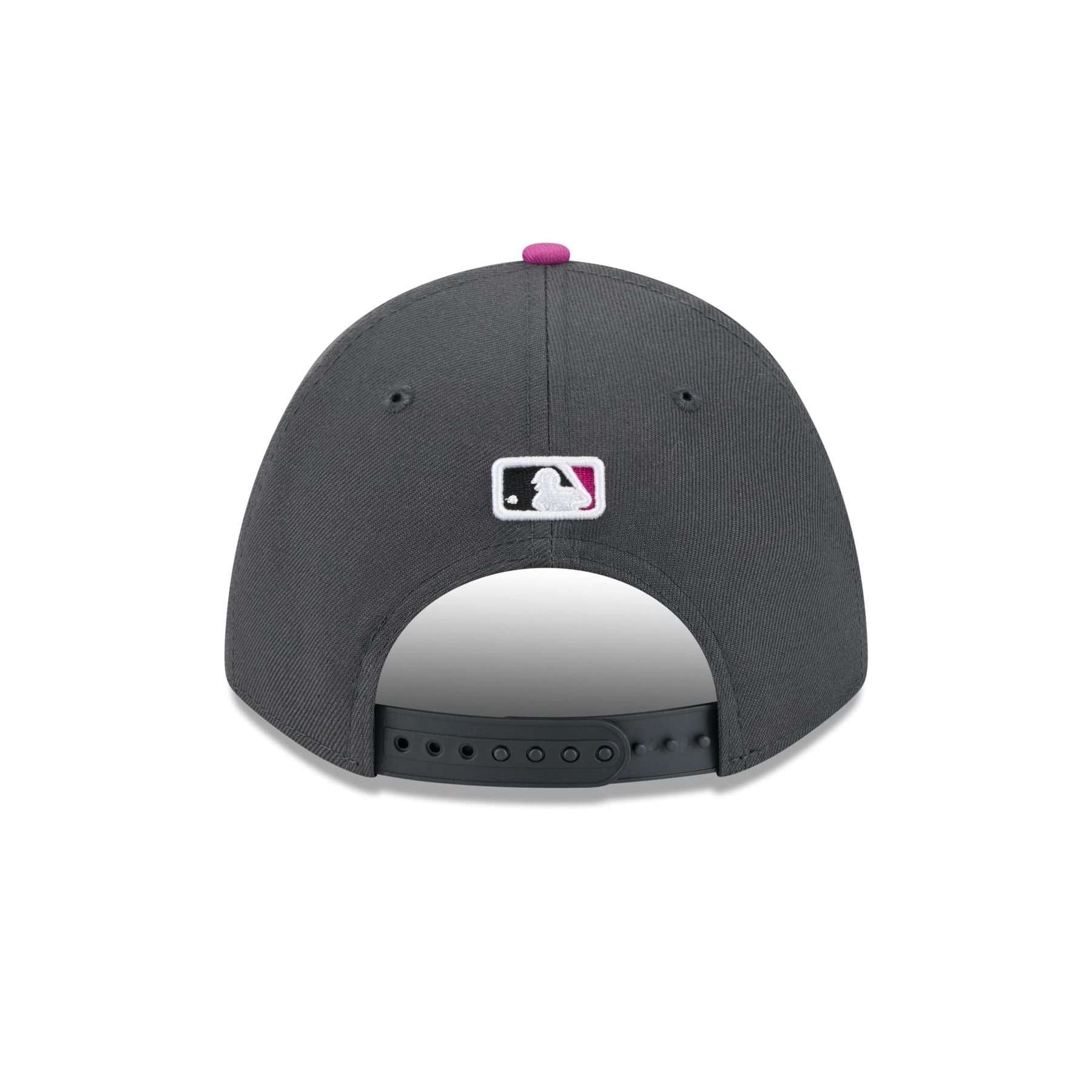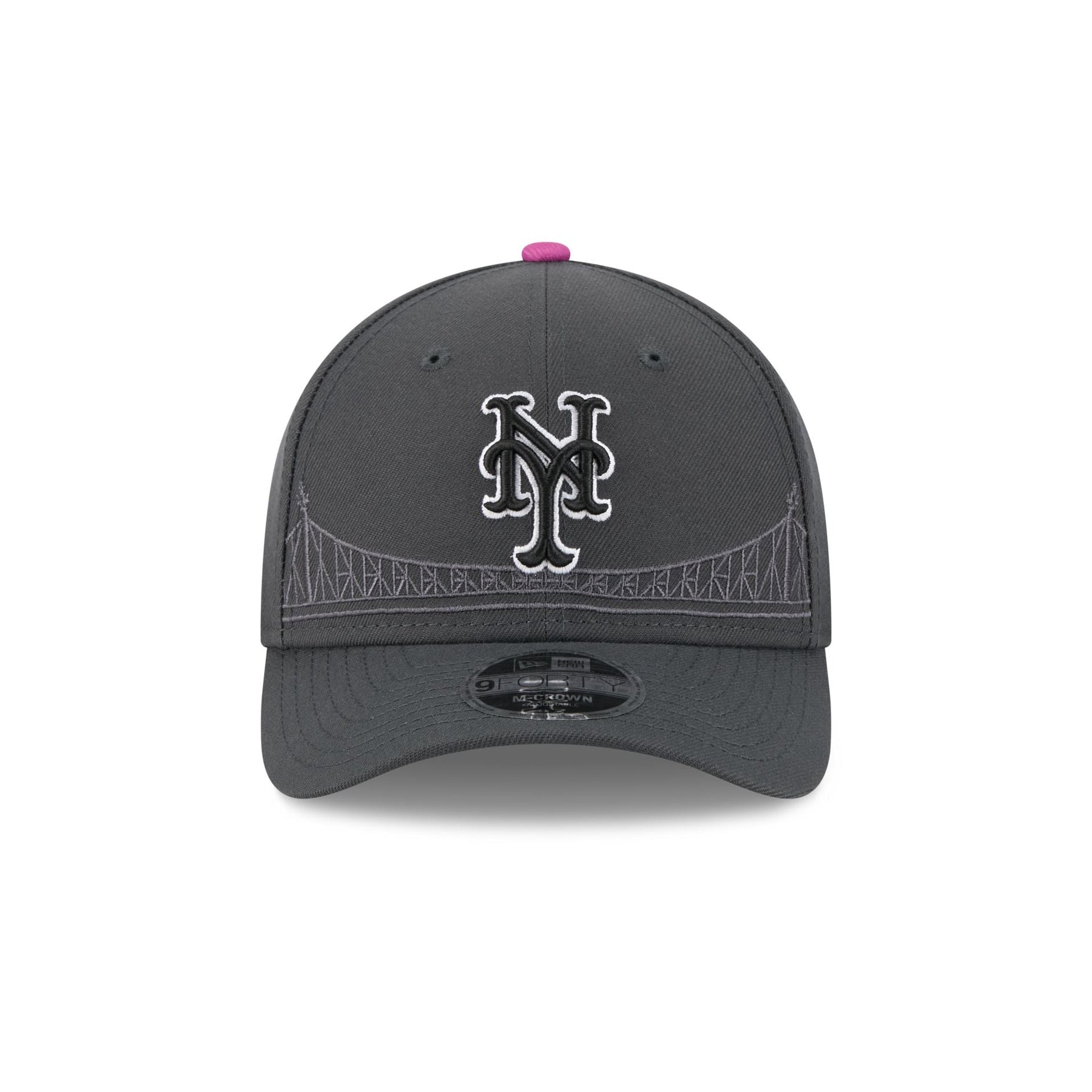 The New York Mets City Connect 9FORTY M-Crown Snapback features an embroidered Mets logo at the front panels with an MLB Batterman logo above a snapback closure at the rear and a gray undervisor.