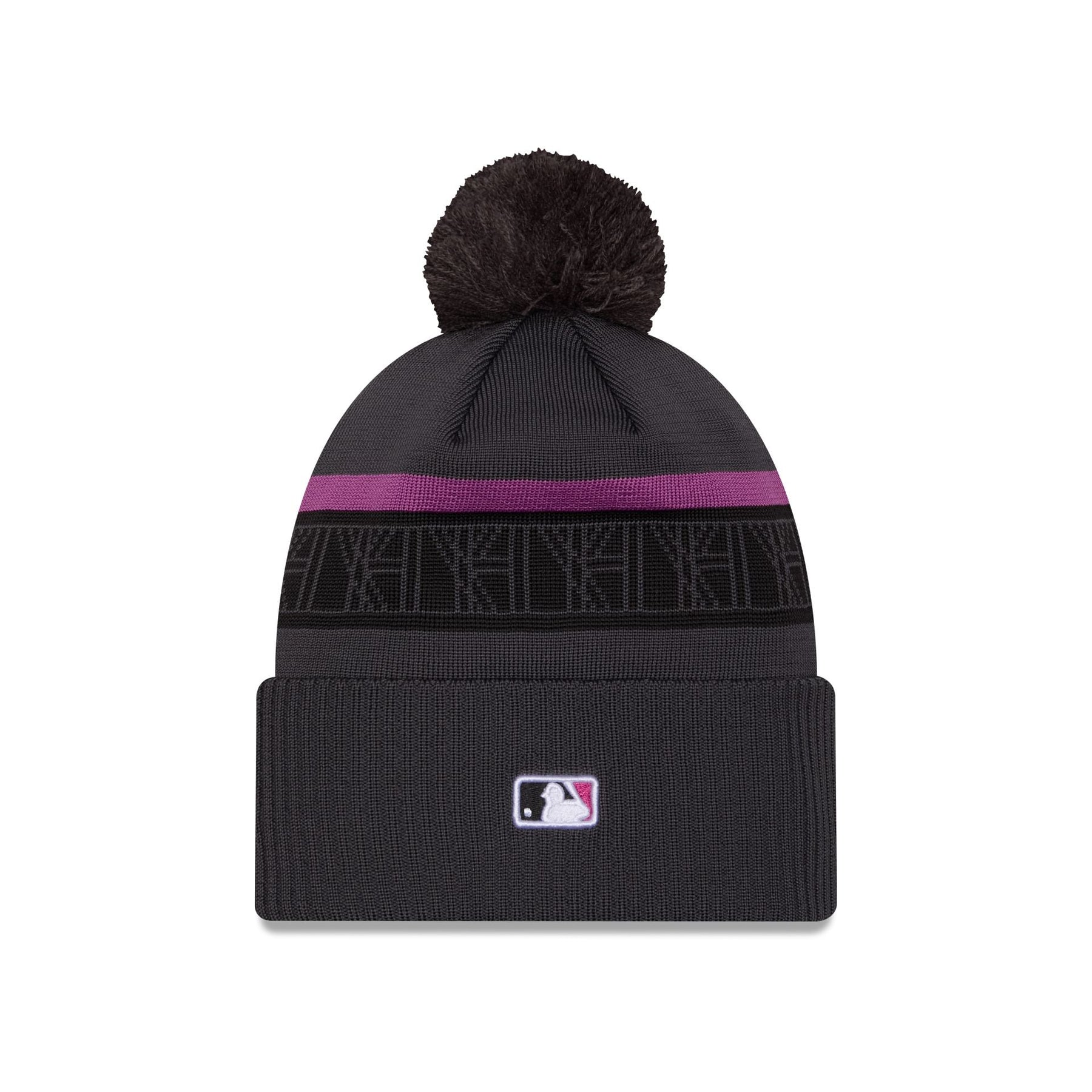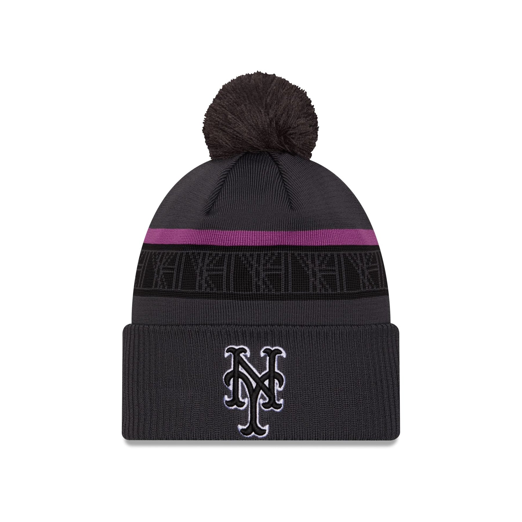 The New York Mets City Connect Pom Knit draws originality from unique elements tied to the surrounding city and features an embroidered Mets logo at the front with a matching MLB Batterman logo at the rear and a one-time removable pom at the top.