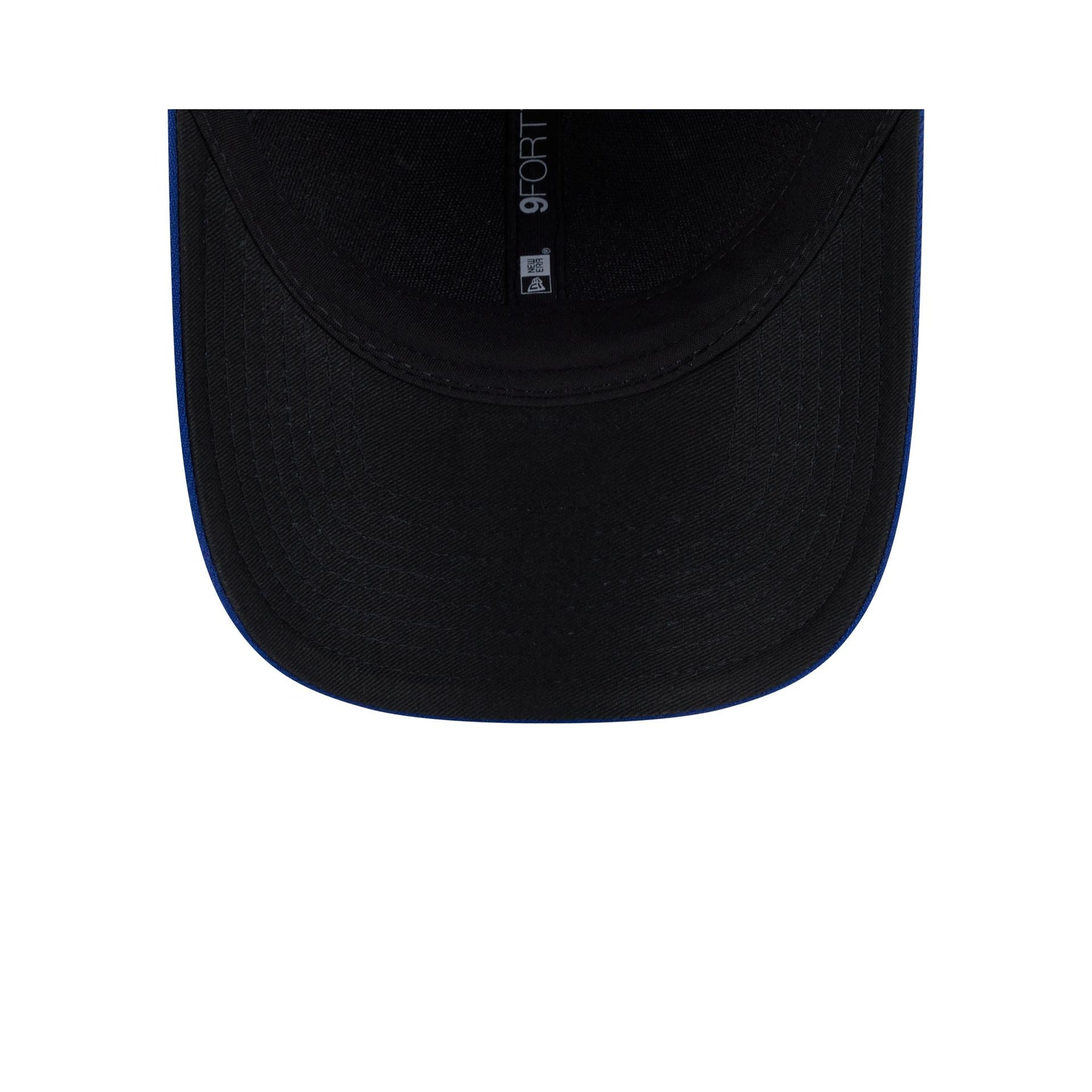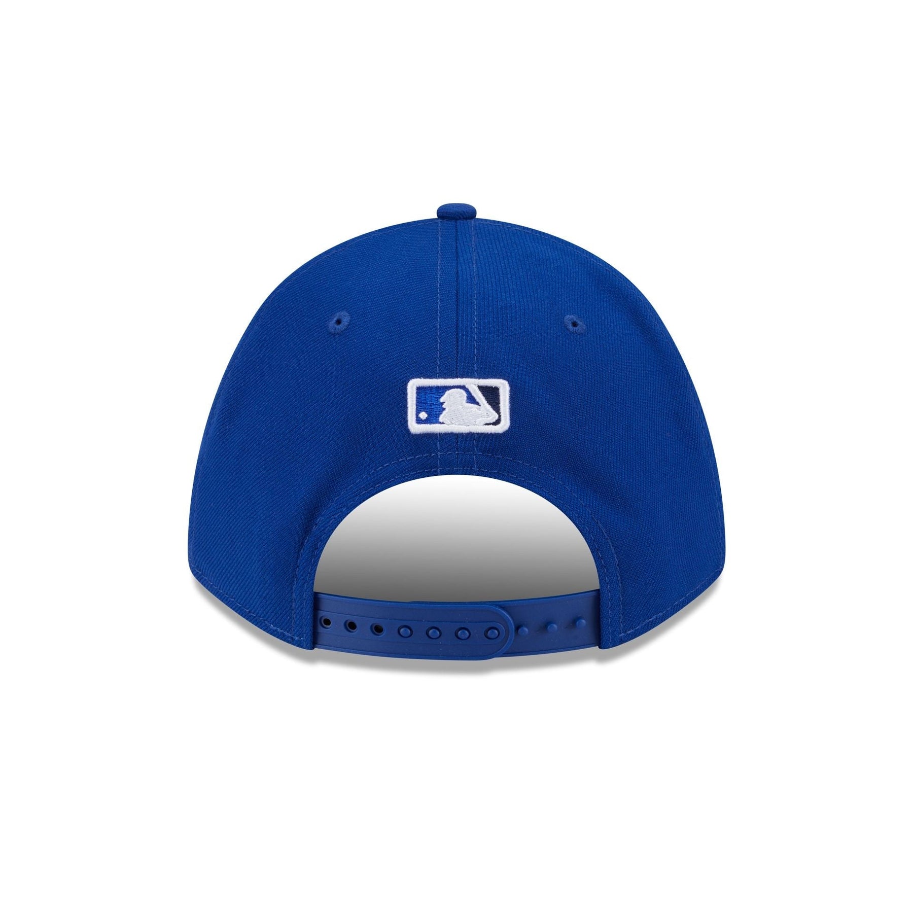 The Toronto Blue Jays Game 9FORTY M-Crown Snapback features an embroidered Blue Jays logo at the front panels with a matching MLB Batterman logo above a snapback closure at the rear and a black undervisor.