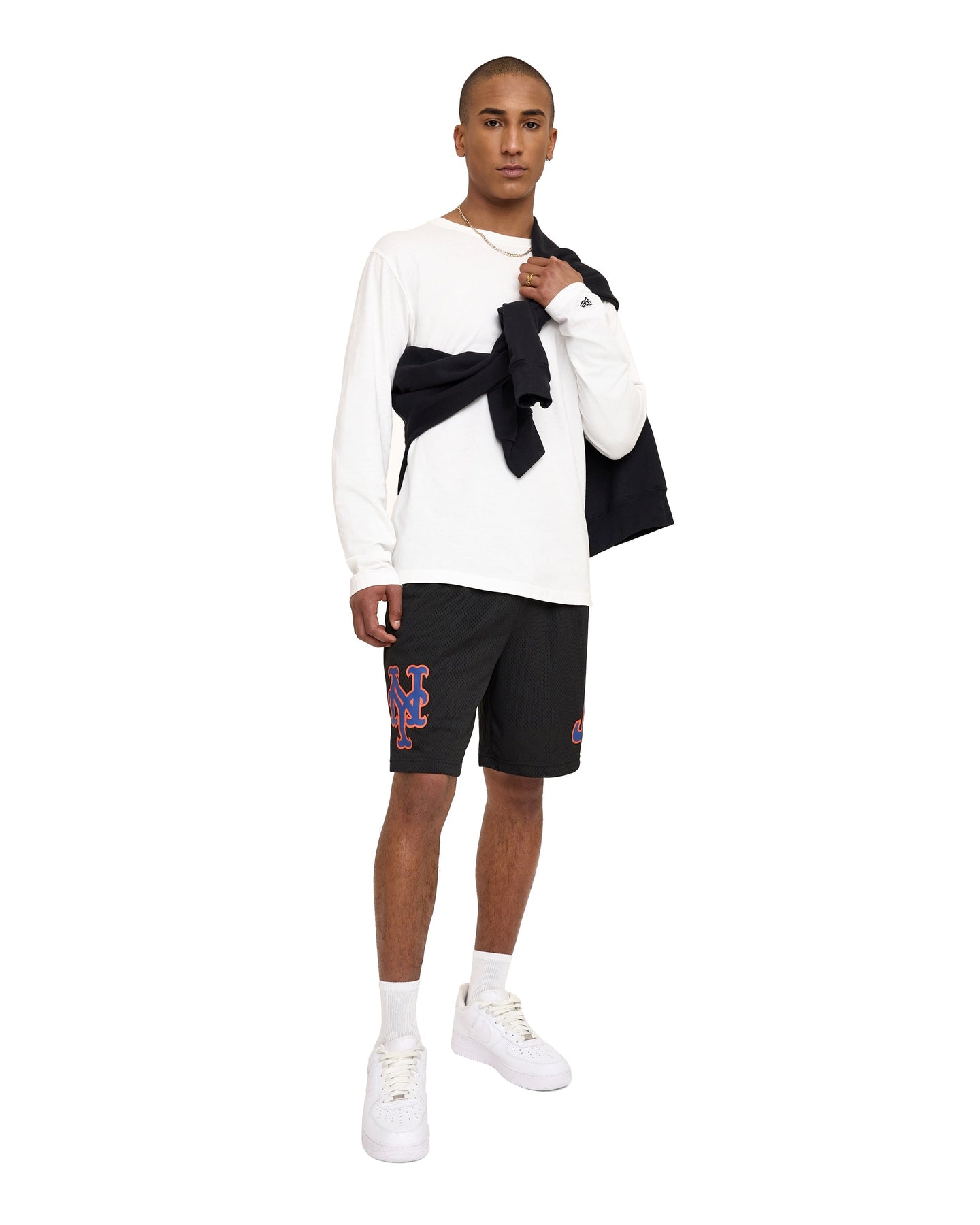 The Toronto Blue Jays Mesh Shorts features a screen-printed Blue Jays logo at the left leg with a team wordmark at the right leg.