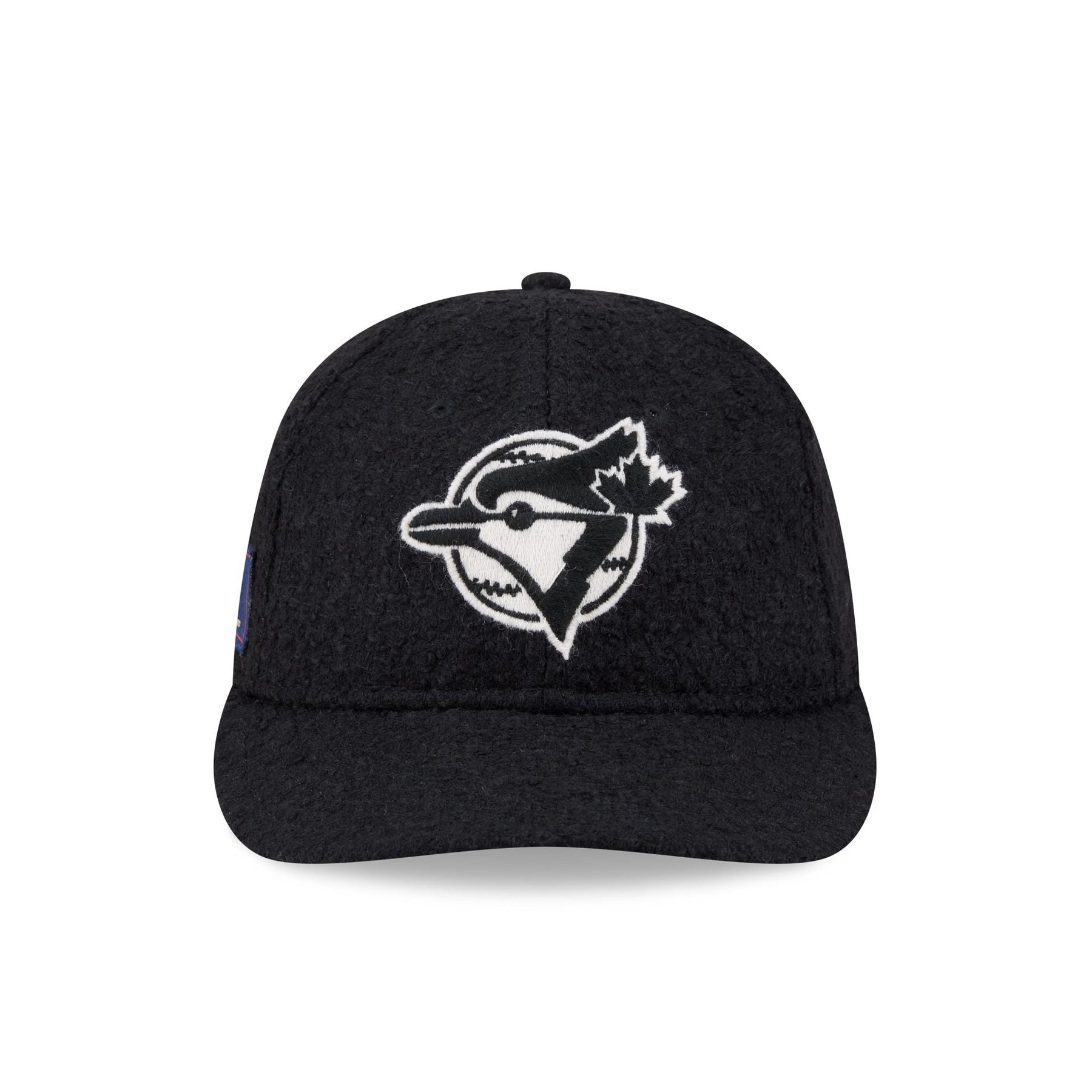 The Toronto Blue Jays Navy Merino & Cashmere Moon Retro Crown 9FIFTY Adjustable Cap features an embroidered Blue Jays Cooperstown logo at the front panels with a Merino and cashmere Moon fabrication throughout and a satin Moon tag woven to the right-wear side. Additional details include an adjustable metal clasp closure at the rear and a gray undervisor.