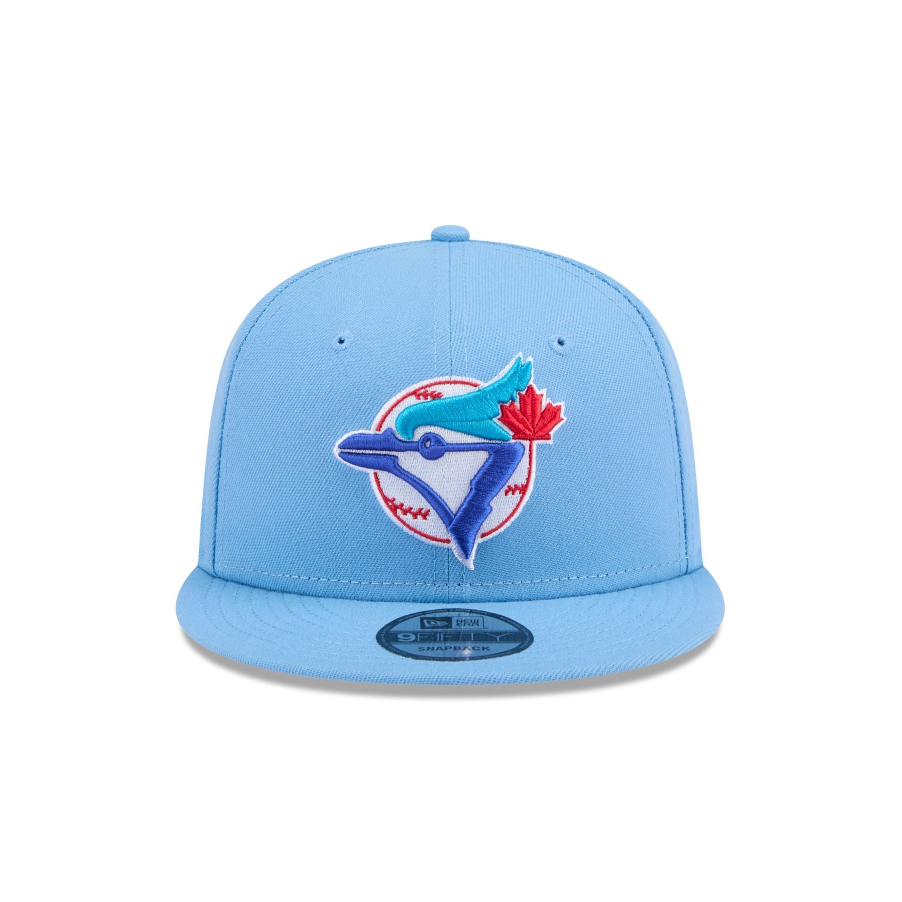 The Toronto Blue Jays Sky Blue 9FIFTY Snapback features an embroidered Blue Jays Cooperstown logo at the front panels with a snapback closure at the rear and a gray undervisor.